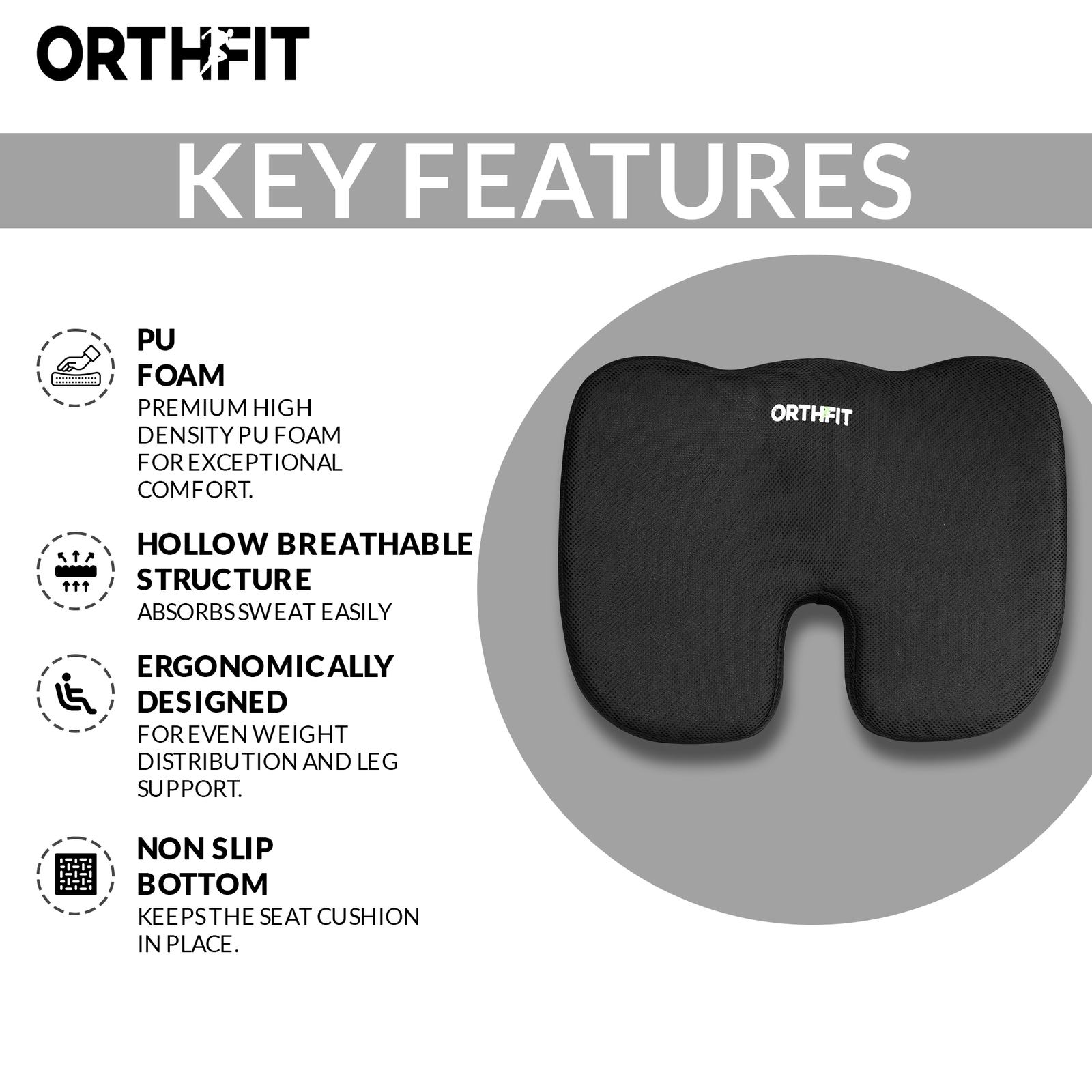 Orthfit Coccyx Cushion – Premium PU Foam